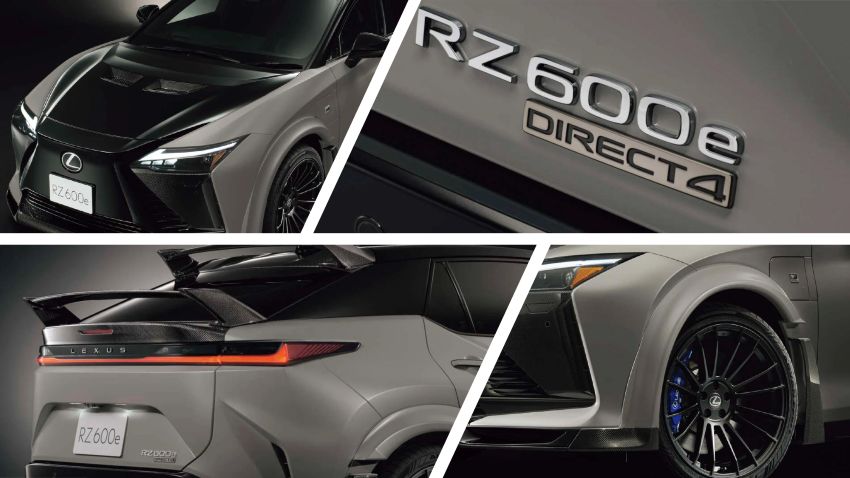 Ngoại hình của RZ600e F Sport Performance thể hiện rõ chất thể thao với hàng loạt chi tiết hoàn thiện bằng carbon như nắp ca-pô, viền đèn pha, mui xe, cánh gió sau kép, các cánh hướng gió và ốp hông cửa dưới. Bộ bodykit và ốp mở rộng vòm bánh hoàn thiện diện mạo mạnh mẽ, đúng tinh thần F Sport Performance.